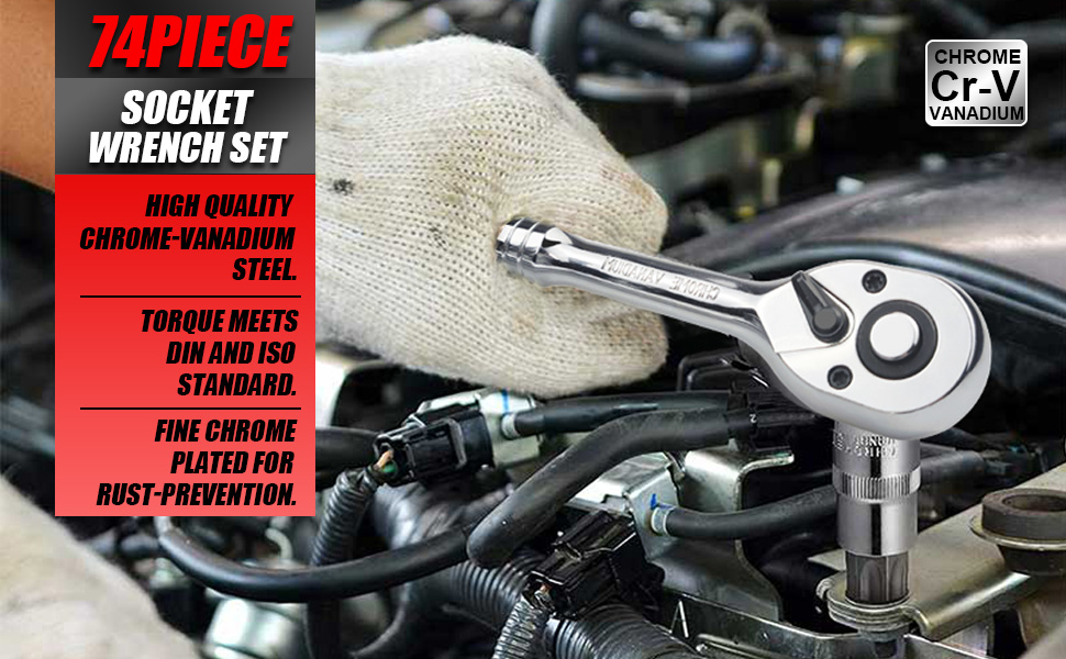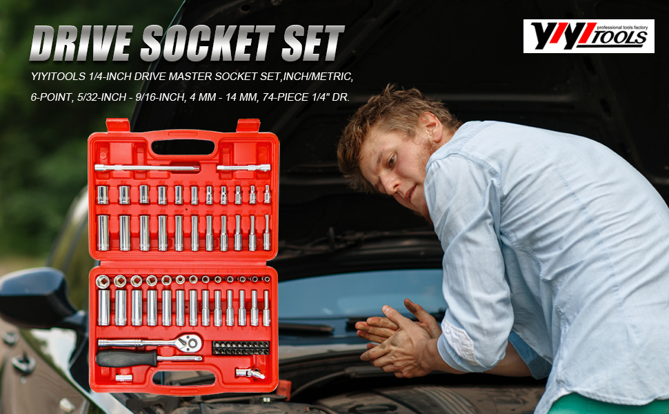 - [Package Include]:The 1/4" Socekt Set Includes 48 pcs sockets in SAE and metric, deep and shallow, from 4mm to 14mm, 5/32-Inch - 9/16-Inch, 6 points, high torque, Cr-V sockets.